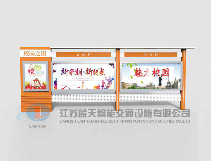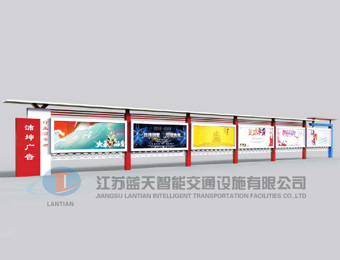 是一家生產(chǎn)宣傳欄,候車亭,公交站臺,閱報欄,指路牌,廣告垃圾箱,滾動換畫燈箱等系列產(chǎn)品廠家!產(chǎn)品多達(dá)上百種,亦可根據(jù)客戶的需求加工制作各種型號、規(guī)格的產(chǎn)品。目前已經(jīng)成功的向市場推出裝備有太陽能的各類產(chǎn)品,緊跟國家倡導(dǎo)“節(jié)能低碳”的環(huán)保政策。